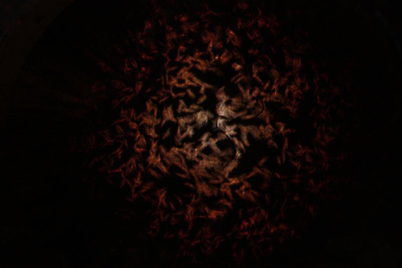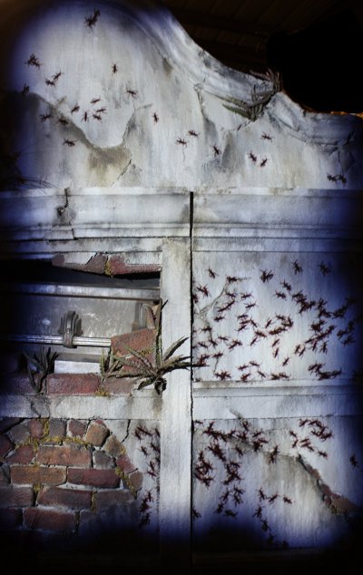 The insect projection system is an effect that is being rendered in real time. A computer is running a mathematical model of the insect and its movement. The program also contains a model of the scene the insects are being projected into, as well as a lighting model. The coupling of these three effects together is what creates the jaw dropping of insects on the wall.